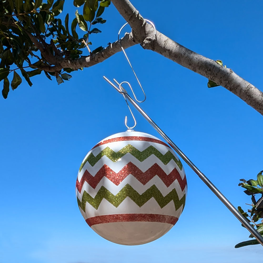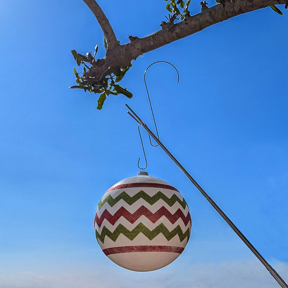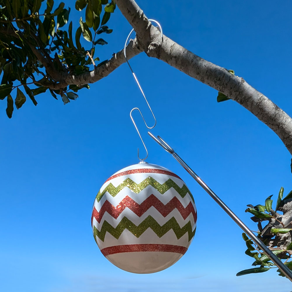 Ornament hooks can also be used on their own for decorating smaller trees or lower branches. When the holidays are over, simply use the pole again to safely remove your ornaments—ladder-free!