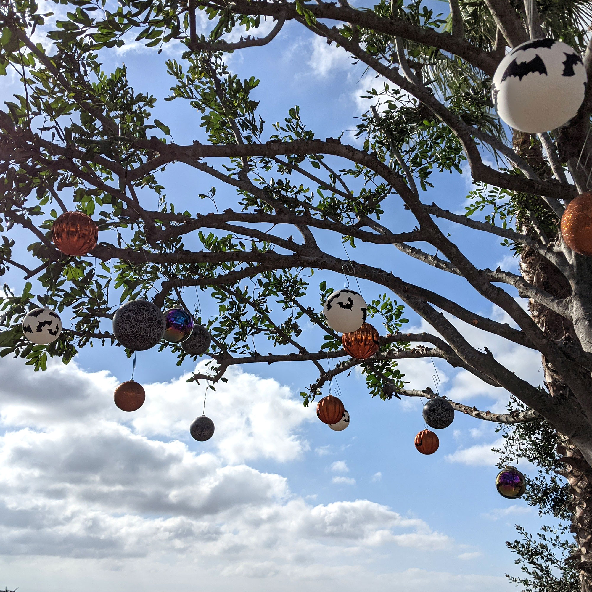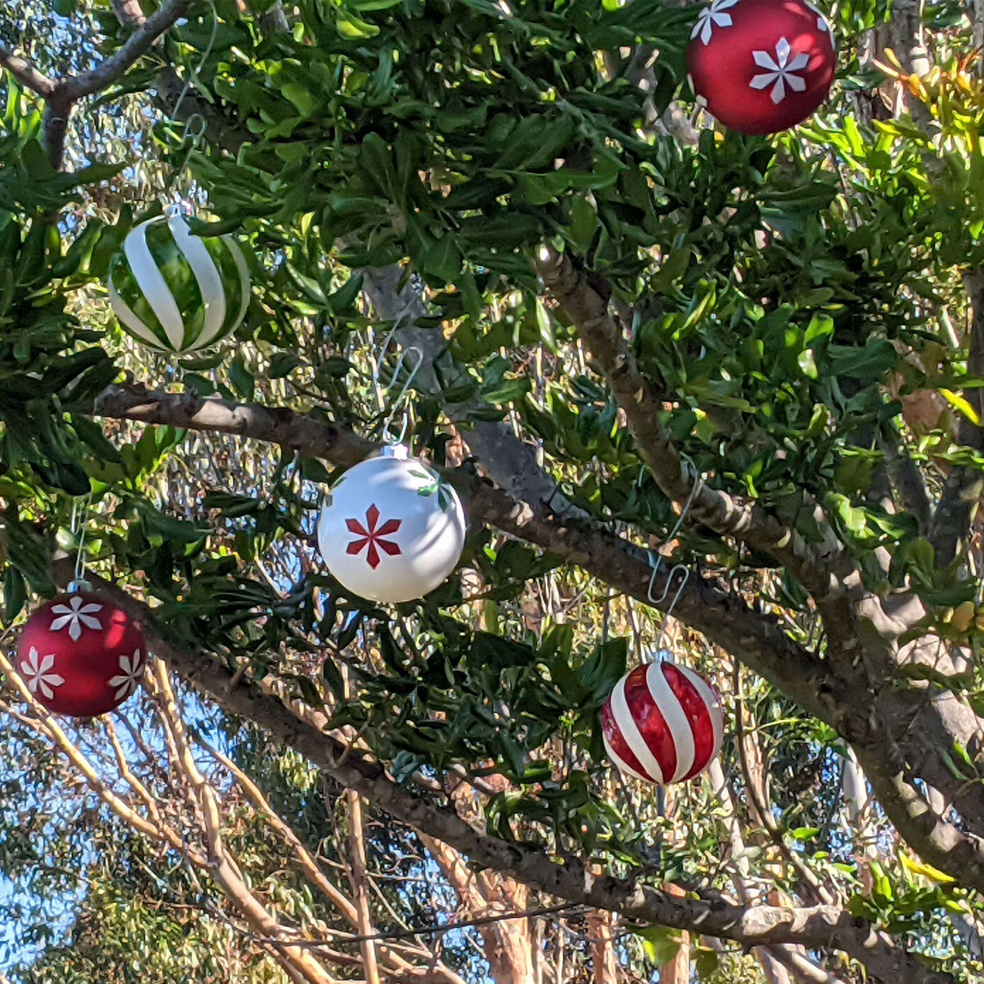 - Outdoor tree decorating tool allows for hanging and removing ornaments without a ladder.